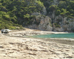 Que de pistes, d’anciennes traces, de chemins secrets et de randonnées magiques nous offre la Grèce que nous arpentons à tout horizon. Pour les aventuriers, amoureux de la nature, adiques de tout terrain, fans de bivouacs insolites, curieux de rencontres magiques et bien plus encore, les divinités helléniques exaucent les souhaits à chaque détour. Derrière chaque paysage se profilent une nouvelle histoire, d’ancestrales conquêtes, de vieilles pierres, de sages personnages et une leçon de vie. Telle la tortue que nous évitons en bord de chemin, notre monture grimpe prudemment en rampante, d’escales en escales, au rythme des sentiers chaotiques et des nuits étoilées, partant du littoral aux sommets dénudés. Jusqu’à la fin de notre pèlerinage de 3 mois en Grèce, la cité antique s’est dévoilée sur fond de magistraux et merveilleux panoramas. Intarissables possibilités de balades et ballades enchanteresses.