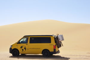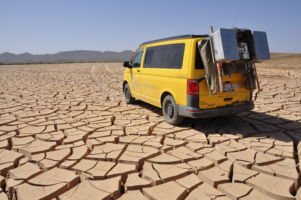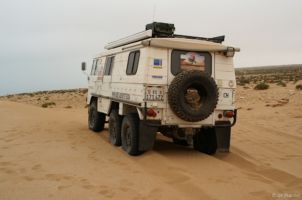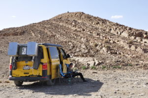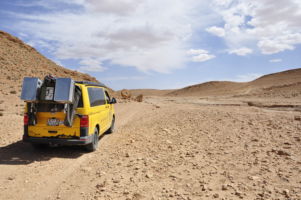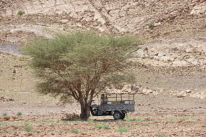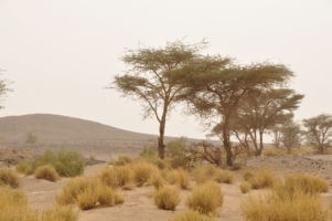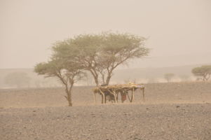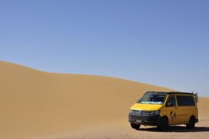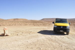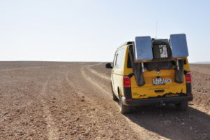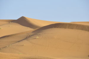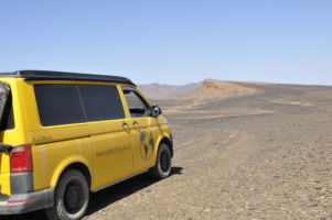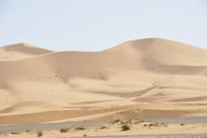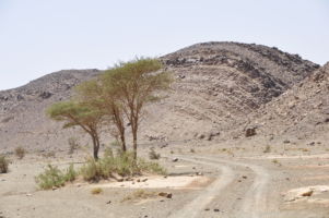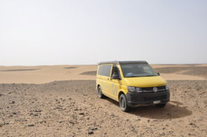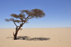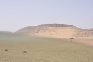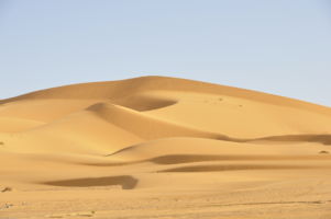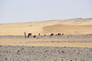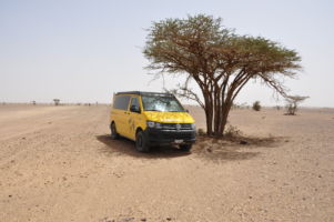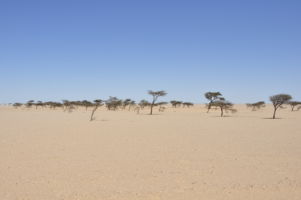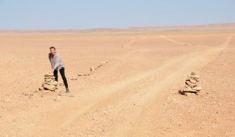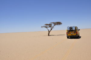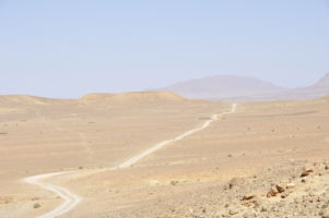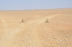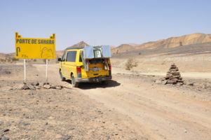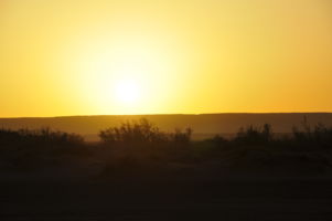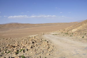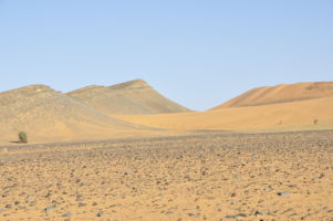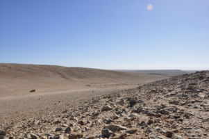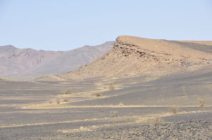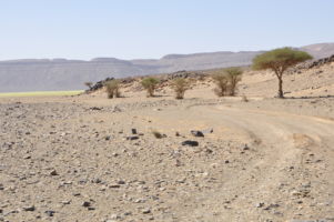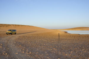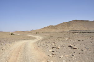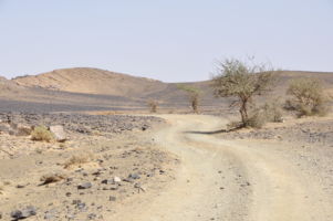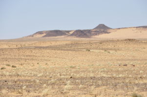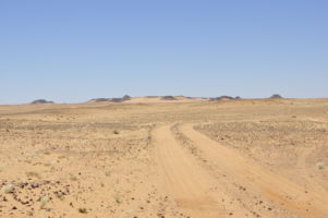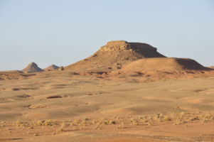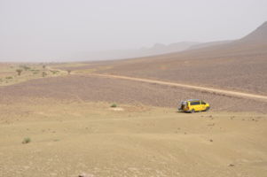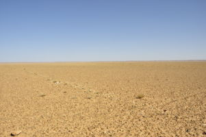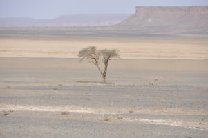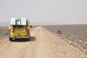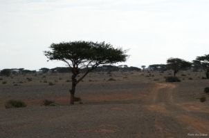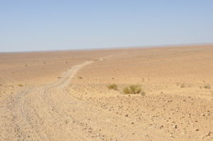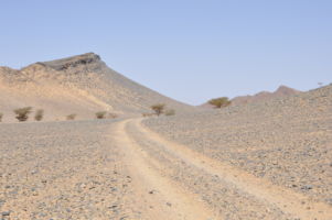 Porte du Sahara occidental, traversée sud-est / sud-ouest. Plus aucun village, que des déserts qui se succèdent, ayant pour seul mirage la ligne du ciel et de la terre se confondant à l’horizon.