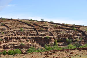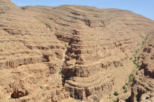 Atlas, La richesse de la diversité topologique du Maroc est, comme un grand livre de géologie ouvert, témoin des successions de mouvements des roches, formant des plis et replis par paliers, avec des spécificités propres à chaque région. Parallèlement à la ligne de fracture du sud, les 1ers versants de l’Anti-Atlas conservent encore, sur leurs flancs et crêtes, des allures et empreintes de sable soufflé par les vents.