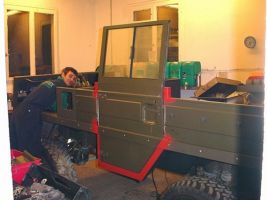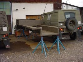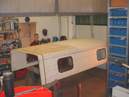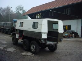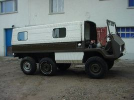 Pinz 6×6 bâché d’origine transformé avec un hard-top en fibre de verre. Ceci avec l’aide d’un préparateur.